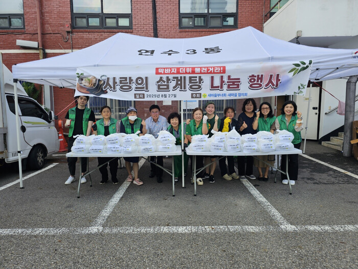 한편, 연수3동 새마을부녀회는 이번 삼계탕 행사뿐 아니라, 김장 나눔, 장학금 기부 등 다양한 이웃사랑 나눔과 봉사활동을 지속적으로 이어오고 있다.