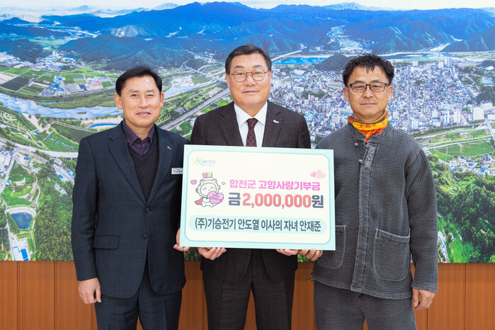 안도열 이사는 2023년 이웃돕기성금 350만원을 기탁하고, 그의 자녀 안재준씨가 고향사랑기부금 120만원을 기탁하면서 남다른 합천 사랑을 실천하였으며, 올해에도 변함없는 고향 사랑을 보여주었다.