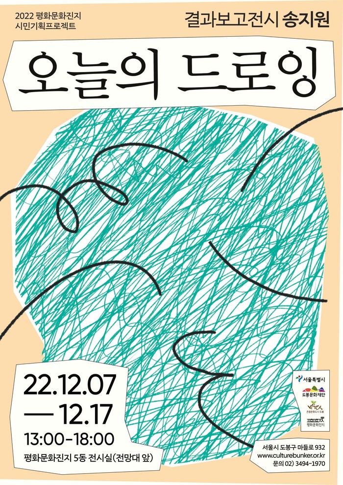 '오늘의 드로잉'은 2022년 평화문화진지 시민기획프로젝트에 입주해 1년간 공공예술프로젝트를 진행해 온 송지원 작가의 결과보고展이다.