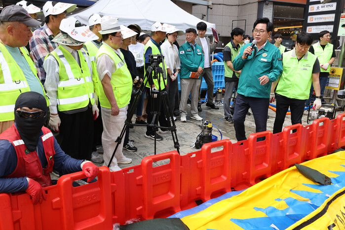 이날 훈련에는 지역주민과 상인 등 50여명이 참석한 가운데 박일하 구청장이 직접 상황별 행동 요령과 장비 사용법 등을 설명하고, ‘빗물받이 관리자’의 역할에 대해 특별히 강조했다.