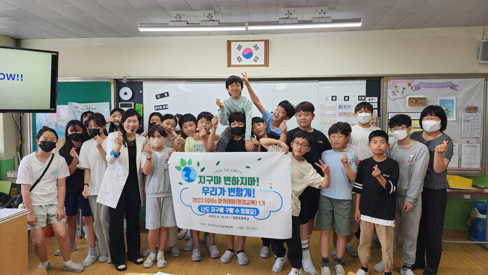 [진주=엄기동 기자] 진주시지속가능발전협의회(회장 민현주)는 저탄소 생활문화 정착을 위해 ‘지구야 변하지마! 우리가 변할게!’라는 주제로 ‘2023 SDGs(지속가능발전목표) 아카데미’ 제1기 환경교육을 14일 정촌초등학교 6학년을 대상으로 실시했다. ‘지구야 변하지마! 우리가 변할게!’는 기후위기로 인한 환경오염이 가져다주는 위험성을 알려 책임감과 경각심을 유도하고, 생활 속 탄소중립 실천 퀴즈, 다양한 게임 그리고 토론 등을 통해 탄소중립의 의미와 실천방법을 아이들이 눈높이에 맞게 배워보는 교육 프로그램이다.