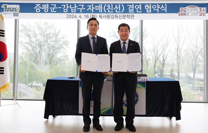 [시민일보 = 이대우 기자] 서울 강남구(구청장 조성명)가 충북 증평군과 16일 김득신문학관(증평군 증평읍 소재)에서 친선결연을 체결했다.