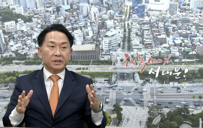 | ▲ 이성헌 구청장이 <시민일보>와의 인터뷰에서 대중교통전용지구에 대해 설명하고 있다. (사진제공=서대문구청) |