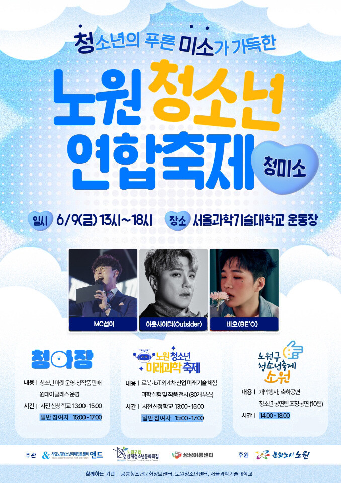 [시민일보 = 홍덕표 기자] 노원구(구청장 오승록)가 오는 9일 서울과학기술대학교 대운동장에서 노원 청소년 연합축제 '청미소'를 개최한다.