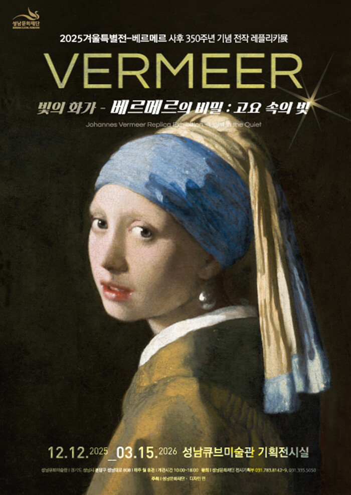 [성남=오왕석 기자] 성남문화재단(대표이사 윤정국)은 네덜란드를 대표하는 거장 요하네스 베르메르의 예술세계를 조망하는 겨울 특별기획전 ‘베르메르의 비밀: 고요 속의 빛’ 레플리카 전시를 12일(금)부터 내년 3월 15일(일)까지 성남큐브미술관 기획전시실에서 개최한다.