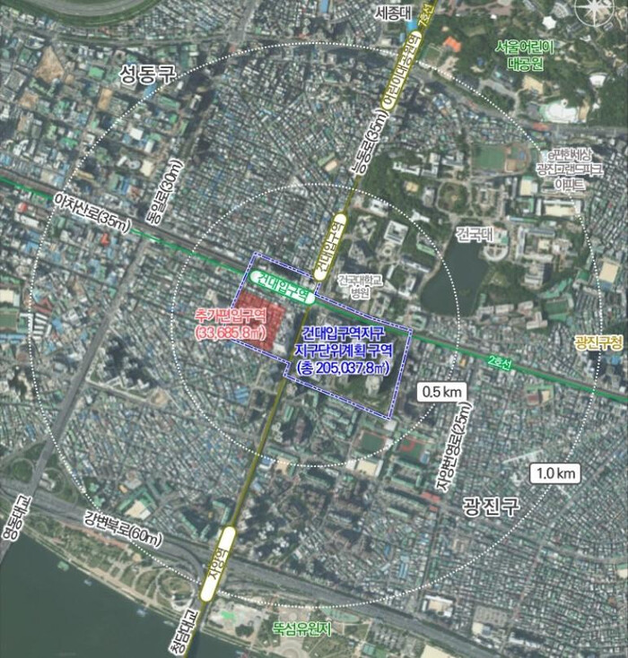 | ▲ 건대입구역지구 지구단위계획 구역. (사진=광진구청 제공) |