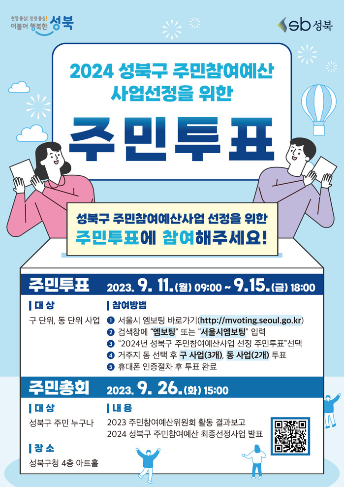 | ▲ 2024 주민참여예산사업 선정 온라인 주민투표 안내문. (사진=성북구청 제공) |