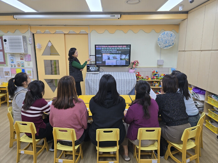 | ▲ 어린이집에서 보육 교직원 대상 안전 교육하는 모습. (사진=성동구청 제공) |