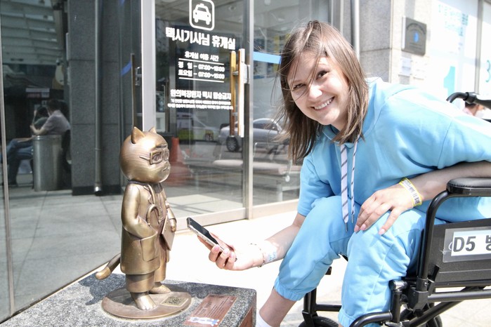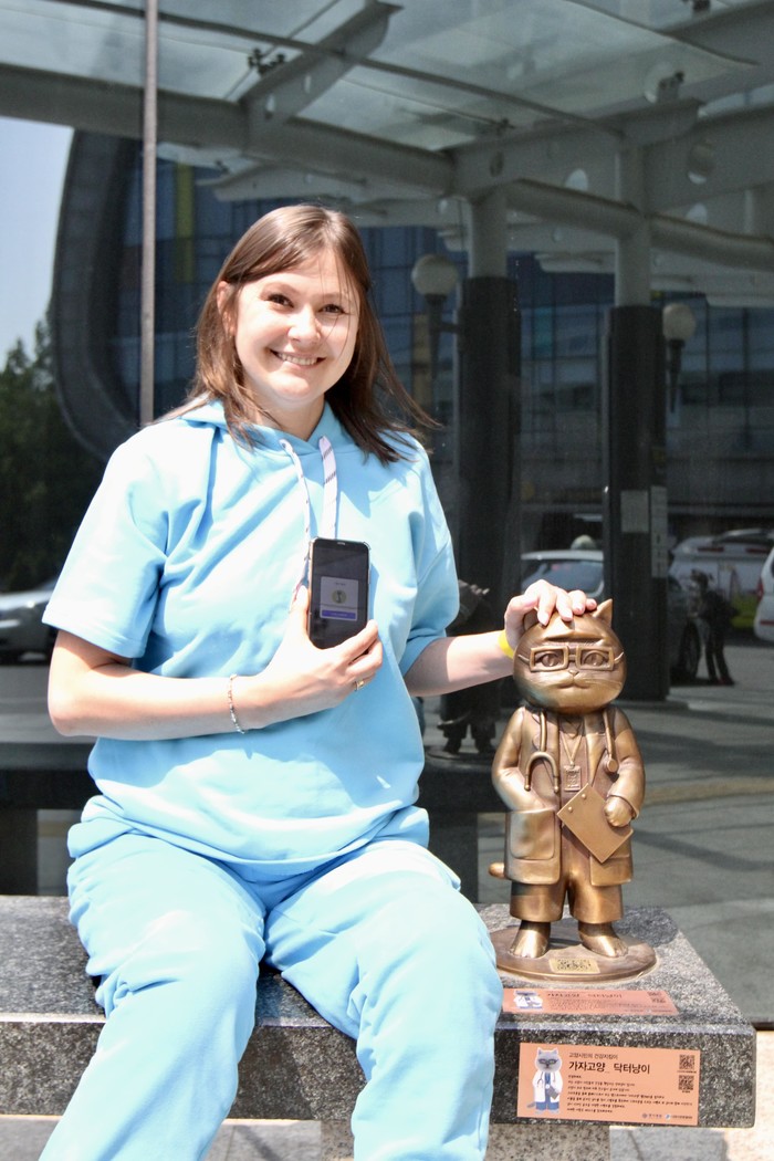 또 동상에 부착된 QR코드를 통해 명지병원과 냥이존에 대한 소개도 볼 수 있다.