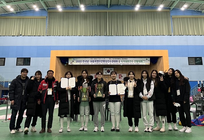 지난 1월 21일부터 25일까지 강원도 양구문화체육관에서 열린 2022년 전국 남·녀 종목별 오픈펜싱선수권대회 겸 국가대표선수선발대회에서 전남도청 女펜싱팀이 사브르 개인전 금1개, 사브르 단체전 은1개를 획득했다.