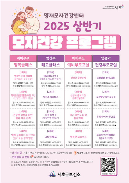 [시민일보 = 박소진 기자] 서초구(구청장 전성수)가 이달 5일부터 양재모자건강센터에서 건강한 임신·출산·육아를 위한 ‘모자건강 프로그램’을 운영한다고 11일 밝혔다.