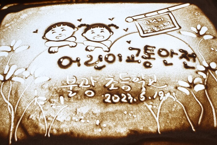 ‘찾아가는 스쿨존 어린이 안전교육’은 기존 대면 강의 형식이 아닌 체험형 샌드아트 공연 교육이다. 빛과 모래를 이용한 샌드아트 공연은 보행 중 스마트폰 사용금지, 교통신호 준수 등의 안전사고 예방 등의 교육 내용으로 구성됐다.