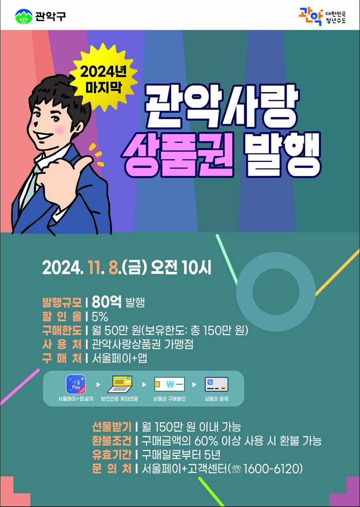 특히 이번에는 관악구가 소요 예산을 전액 부담해 2024년도 마지막 상품권 발행을 추진하여 지역경제 살리기 총력전에 나섰다.