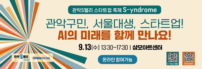 [시민일보 = 여영준 기자] 관악구(구청장 박준희)는 오는 13~14일 양일간 창업 생태계 확장과 기업 성장 지원을 위한 '관악 S-yndrome' 행사를 개최한다.
