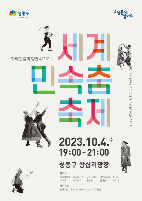 [시민일보 = 홍덕표 기자] 서울 성동구(구청장 정원오)가 오는 10월 4일 오후 7시 왕십리광장에서 '2023 세계 민속춤 축제'를 개최한다.