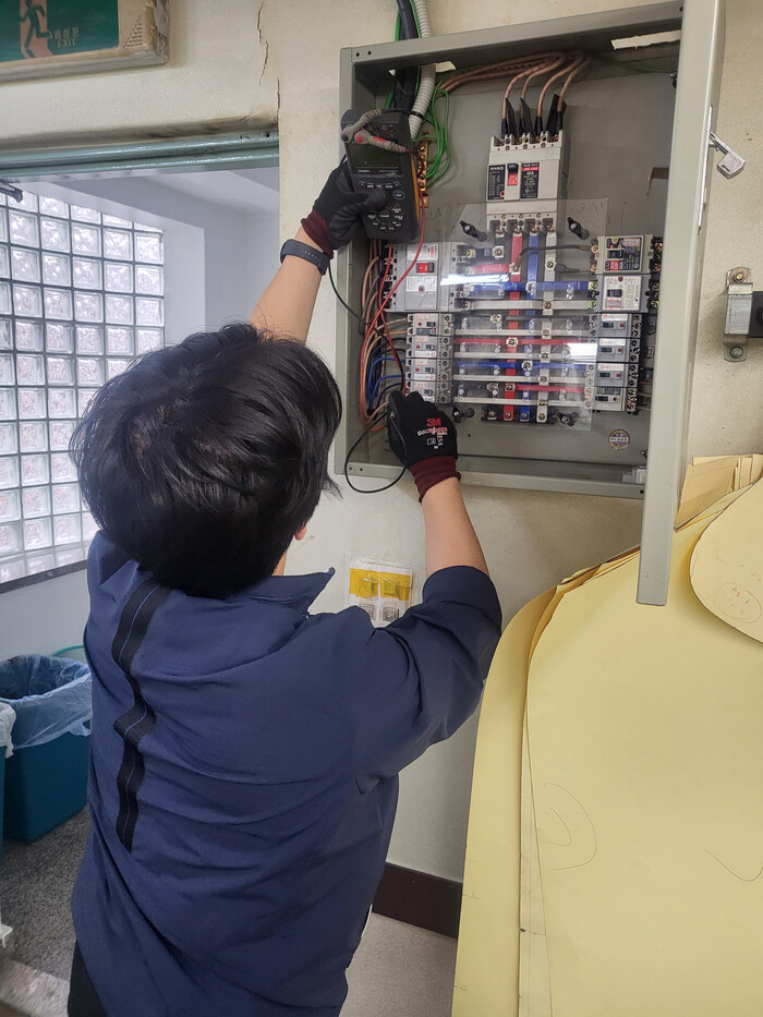 | ▲ 안전취약 계층 가구 대상 전기 시설 방문 점검을 하는 모습. (사진=성동구청 제공) |