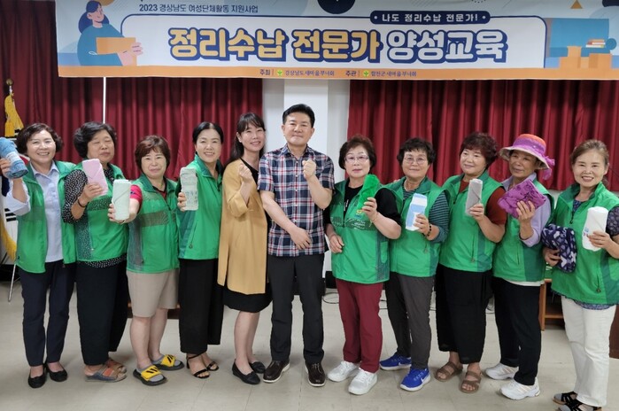 이번 교육은 경상남도여성단체 활동지원사업 일환으로 경상남도새마을부녀회가 주최하고 합천군새마을부녀회의 주관으로 실시됐다. 공간과 물건에 대해 효율적인 정리(수납) 시스템을 습득해 시간적, 공간적, 경제적으로 삶의 질 향상에 기여하기 위해 홀몸노인 또는 조손가정 등 정리 수납 취약계층을 대상으로 재능기부 나눔 운동을 펼쳤다.
