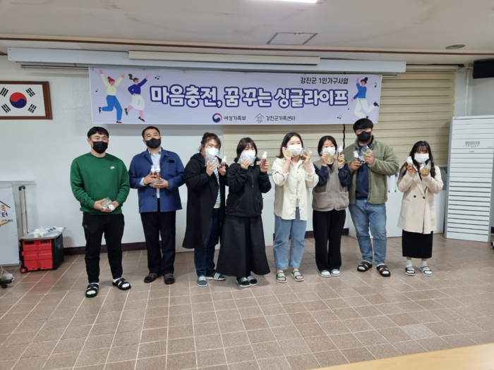 [강진=정찬남 기자] 전남 강진군가족센터는 관내 거주 청년 1인 가구 10명을 대상으로 1인 가구의 다양한 문화체험을 통한 사회적 관계망 형성과 체험을 통해 스트레스 극복 및 삶의 만족도 향상을 위해 ‘마음 충전, 꿈꾸는 싱글라이프-핸드메이드 클렌징폼&비누만들기’프로그램을 실시했다.
