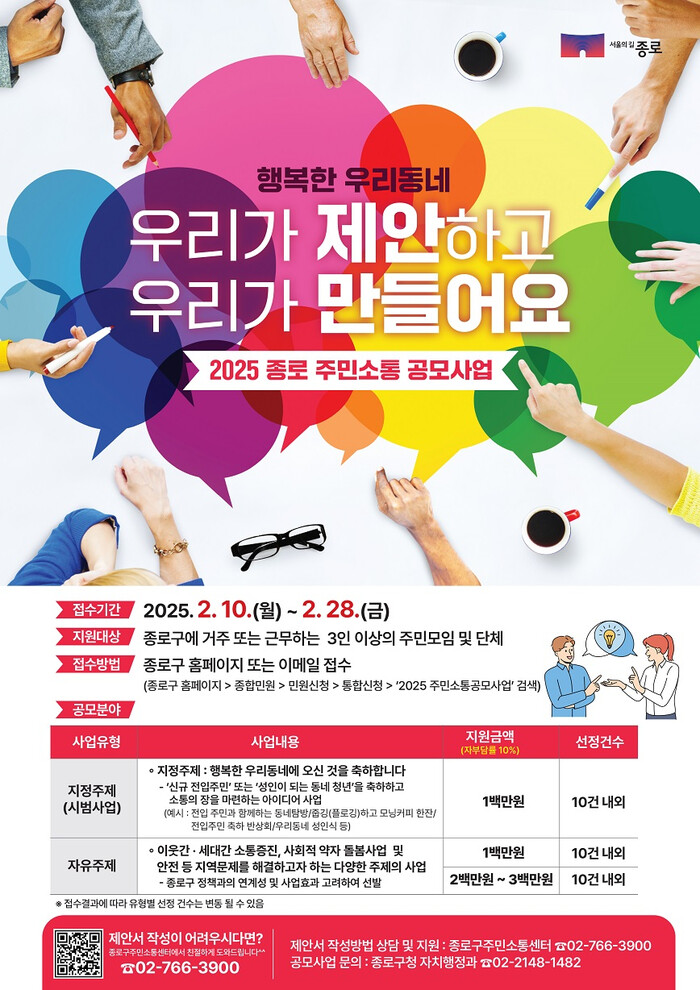 [시민일보 = 이대우 기자] 종로구(구청장 정문헌)가 오는 28일까지 ‘2025년 종로구 주민소통 공모사업’ 참여 신청을 접수한다.