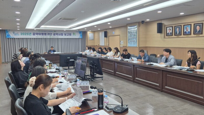 이날 보고회에는 관계 공무원과 공약평가단 50여 명이 참석해 공약 이행 현황과 변경사항을 설명하고 질의응답과 의견수렴 시간을 가졌다.
