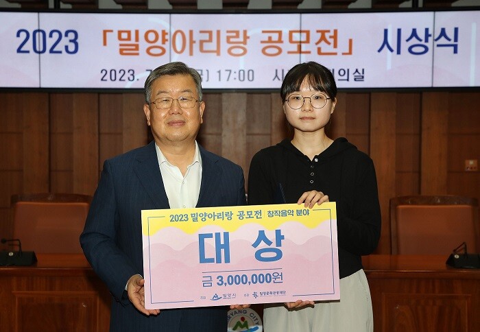 최우수상은 피아노 솔로곡인 ‘아리랑, 밀양’이, 우수상은 국악기와 서양악기의 조화로움이 돋보이는 ‘밀양 Fantasy’와 ‘소망꽃 아리랑’이 선정됐다.
