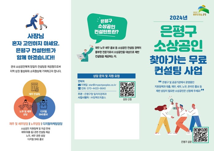 ‘은평구 소상공인 컨설팅’ 사업은 지역 경제 발전과 소상공인의 안정적인 성장을 지원하기 위해 시작됐다. 중장년 맞춤형 일자리 지원을 통해 재무, 세무, 노무, 디지털 마케팅 분야의 퇴직 전문인력을 활용해 영세 소상공인 업체 점포 운영 등에 필요한 컨설팅을 진행해 소상공인의 경영 지원을 돕는다.