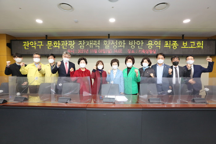 [시민일보 = 여영준 기자] 서울 관악구의회 의원연구단체 ‘관악구 문화관광정책 관악구의원 연구회’(이하 ‘연구회’)가 최근 '관악구 문화관광 잠재력 활성화 방안 연구용역 최종보고회'를 개최했다.