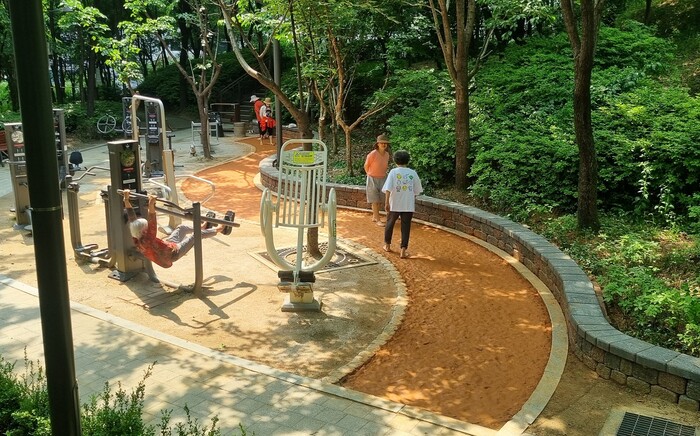 | ▲ 무학봉근린공원에 조성된 웰빙 황톳길. (사진=성동구청 제공) |