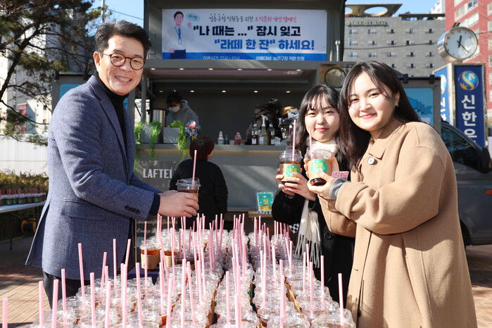 이번 행사는 구청 앞 광장에서 점심시간을 활용해 진행됐으며 모든 직원에게 무료 커피와 음료를 제공했다. 특히 정원오 구청장이 직접 음료를 전달하며 응원 메시지를 전해 분위기를 더욱 특별하게 만들었다.
