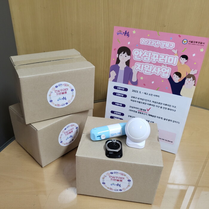 [시민일보 = 홍덕표 기자] 서울 강북구(구청장 이순희)는 젠더폭력 및 주거침입 범죄 등을 예방하기 위해 여성 1인가구 등 주거안전 취약계층을 대상으로 안심꾸러미 3종 세트를 지원한다.