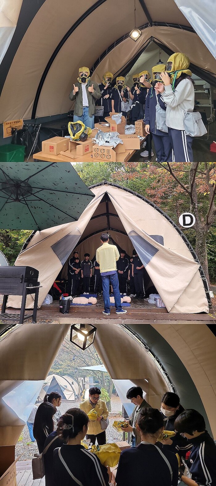 앉아서 진행하는 강의식 교육에서 벗어나 학생들이 직접 민방위 방독면을 써보고, 심폐소생술을 배우며 현장 실습했다. 학생들은 야외에서 자연과 함께 본인은 겪었던 재난 안전사고에 대해 의견을 공유했다.