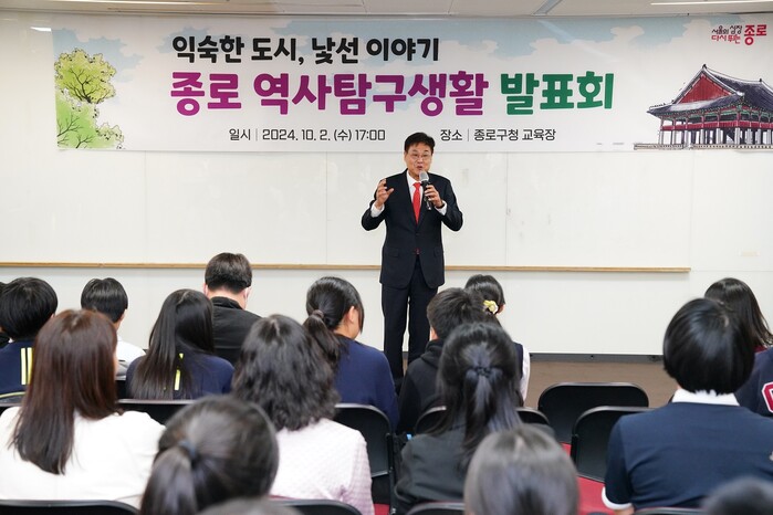 [시민일보 = 이대우 기자] 종로구(구청장 정문헌)가 지난 2일 구청사 12층 교육장에서 '종로 역사탐구생활 발표회'를 개최했다.