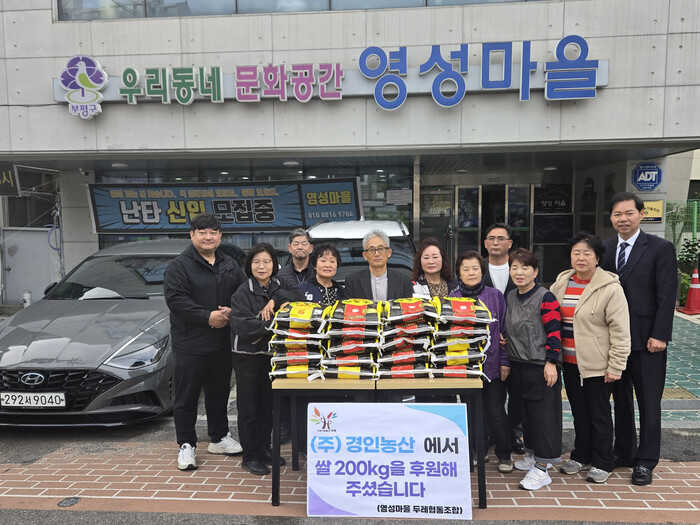 [인천=문찬식 기자] 인천 부평구(구청장 차준택) 삼산1동 주민자치회는 지난 13일 ㈜경인농산이 지역주민으로 구성된 영성마을 두레 사회적협동조합에 쌀 200kg을 기탁했다고 밝혔다.