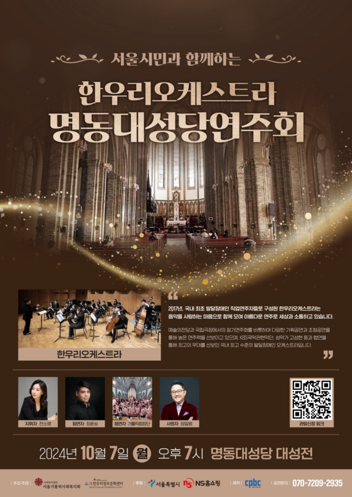 오는 7일(월) 저녁 장애인오케스트라 중 국내 최초로 명동대성당 대성전에서 특별연주회 개최