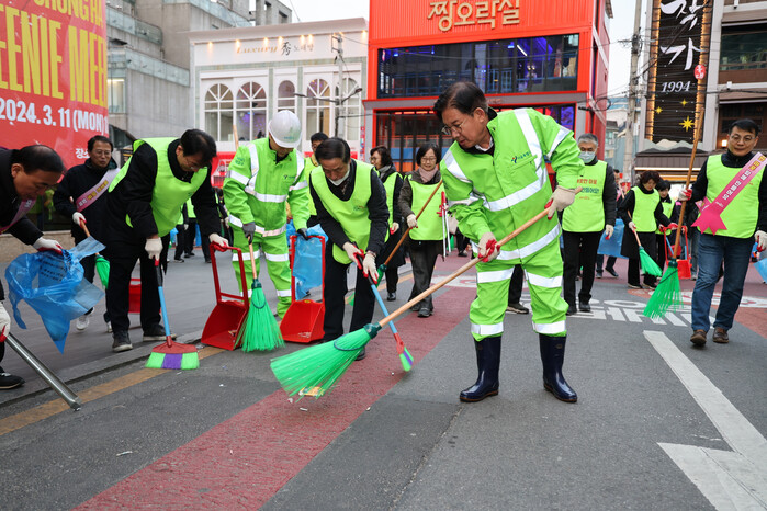 이날 박강수 구청장과 직원, 주민, 학생, 기업체 등 민관으로 구성된 250여명은 레드로드에서 도로와 공공시설물 주변의 쓰레기를 수거하고 물청소를 진행할 예정이다.