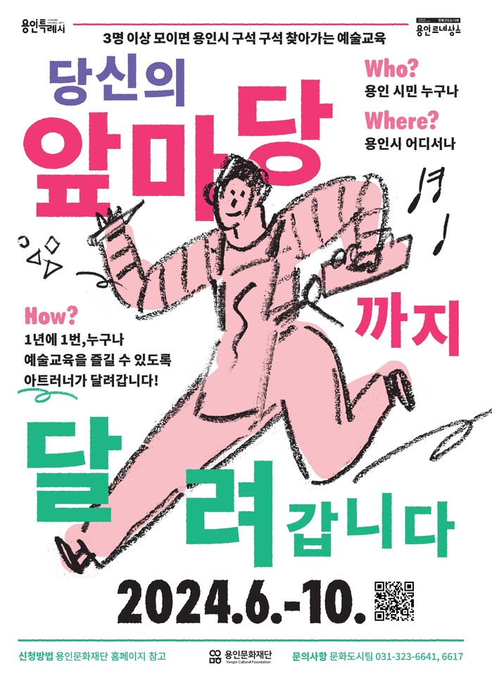 [용인=오왕석 기자] (재)용인문화재단(이사장 이상일)은 찾아가는 예술교육 ‘당신의 앞마당까지 달려갑니다’ 참여자를 모집한다.