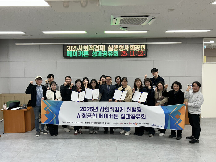 김찬진 동구청장은 “주민과 사회적경제기업이 함께 지역문제를 해결한 의미 있는 과정이었다”며 “이번 메이커톤을 계기로 사회적경제가 지역사회 발전에 더 큰 역할을 할 수 있도록 지원을 강화하고, 주민 주도의 사회공헌 활동이 지속될 수 있는 기반을 마련하겠다”고 말했다.