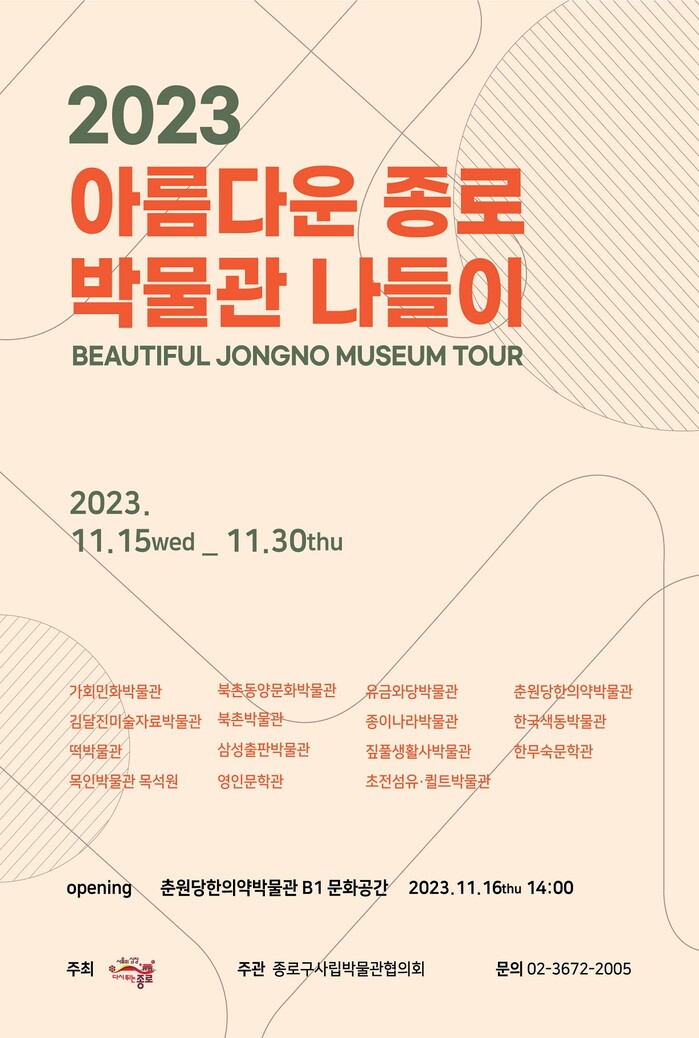 [시민일보 = 이대우 기자] 종로구(구청장 정문헌)가 15~30일 종로구사립박물관협의회 소속 박물관 15곳과 손잡고 ‘2023 아름다운 종로 박물관 나들이’ 행사를 진행한다.