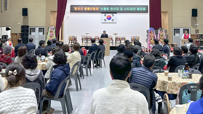 김윤철 합천군수는 축하 인사말을 통해 “사물놀이와 난타는 우리 고유의 풍속으로 전통문화를 전 세계적으로 알리는 데 기여하고 있다”며 “농악이 군의 화합과 발전의 활력소가 되기를 바란다”고 말했다.