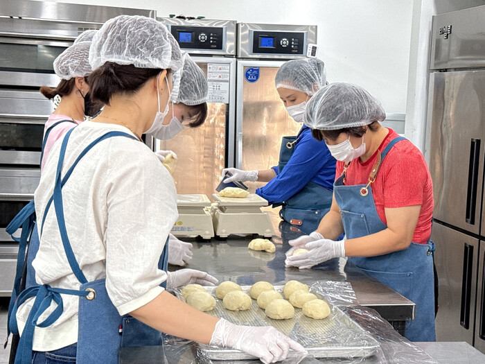 | ▲ 온(溫)식빵 봉사 사업으로 빵을 만드는 모습. (사진=성동구청 제공) |