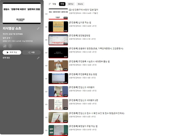 [시민일보 = 이대우 기자] 강동구(구청장 이수희)가 전 직원의 업무 적응을 돕기 위해 업무 매뉴얼을 간단한 유튜브 ‘쇼츠’ 영상으로 제작해 전국 최초로 운영한다고 9일 밝혔다.
