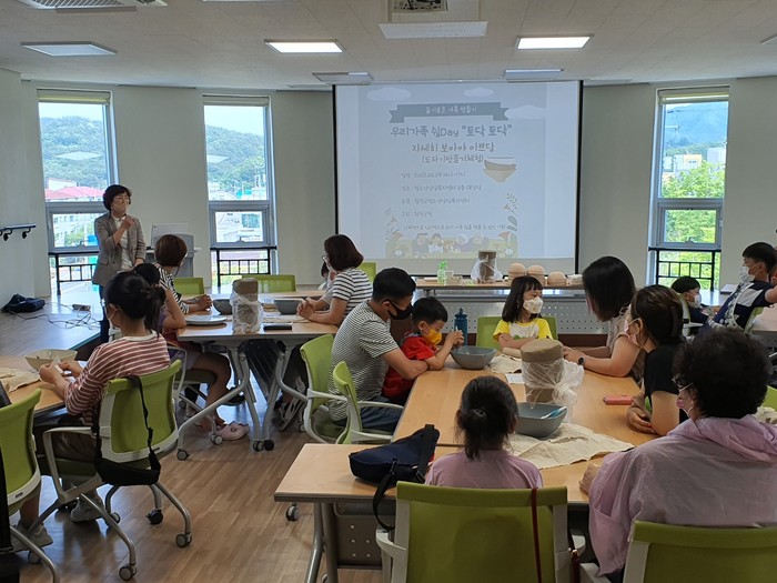 우리가족 토요 쉼Day는 코로나-19로 심리적·신체적으로 지친 부모와 자녀들에게 쉼을 제공하고자 마련됐다. ▲1회기에는 ‘자세히 보아야 이쁘다’라는 주제로 가족이 함께 흙을 만지며 세상에서 하나밖에 없는 ‘우리가족 도자기’를 만들고, ▲2회기에는 힐링 토닥토닥으로 「몸과 마음의 휴식」아로마테라피 체험을, ▲3회기에는 놀이 토닥토닥으로 「놀면 뭐하니」보드게임을 통한 놀이마당 운영으로 소중한 추억을 만들 수 있는 시간을 제공할 예정이다.