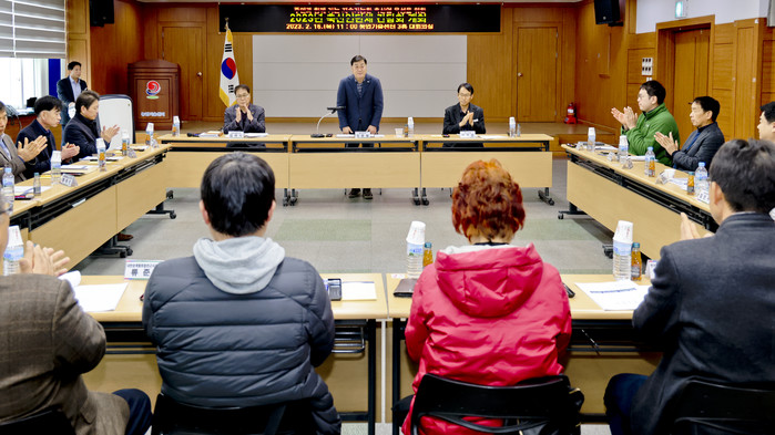 이날 간담회에는 합천군수, 농업기술센터소장, 합천축협 및 각 축산인단체 등 총 19명이 참석했고, 관내 축산발전을 위한 축산업허가, 가축방역, 경매시장 이전 및 가축분뇨처리 관련 등의 현안 사항에 대해 논의 및 의견수렴의 시간을 가졌다.