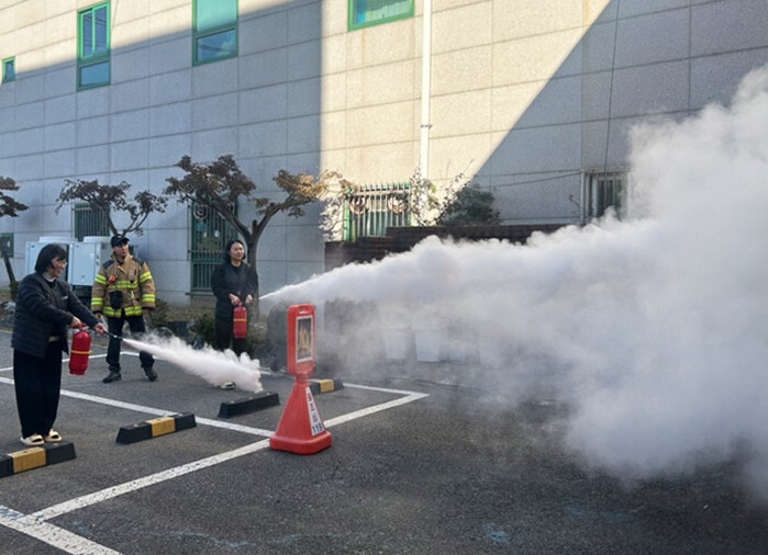 이번 훈련은 청사 내 화재 발생 상황을 가정해 진행됐으며, 화재 발생 시 신속한 초기대응 및 대피요령, 소화전 및 소화기 등 소화 기구 사용 방법 숙지에 중점을 뒀다.
