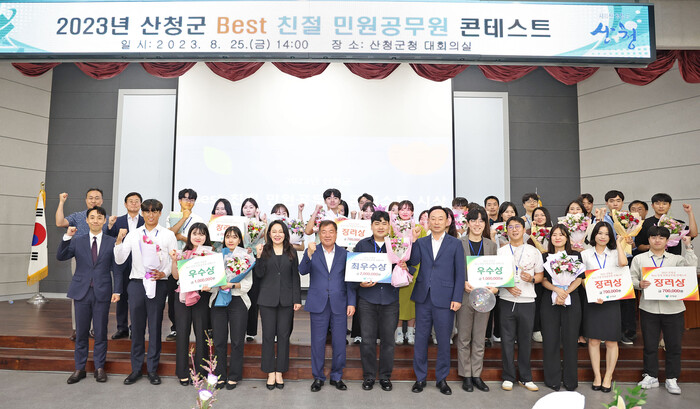 이승화 산청군수는 “이번 베스트 친절공무원 콘테스트를 통해 공무원들의 친절도가 높아지고 친절 분위기가 확산되길 바란다”며 “행정에 대한 군민들의 신뢰도 및 만족도 향상을 위해 최선을 다하겠다”고 말했다.