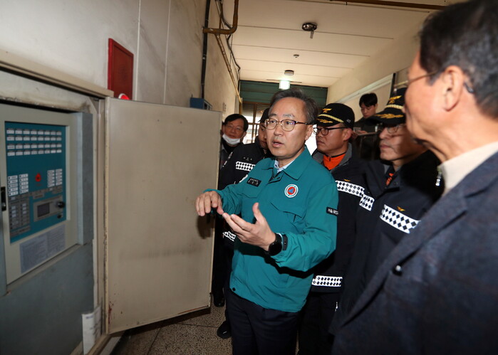 유성훈 구청장은 금천소방서와 함께 상가 내 ‘화재 감지장치’, ‘경보장치’, ‘전기시설’ 등의 작동 여부를 점검했다.
