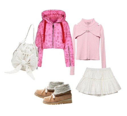 평범한 겨울 룩에 실증이 난 사람이라면, 반다나 프린트가 돋보이는 크롭 기장의 푸퍼 패딩으로 포인트를 주자. 피치 톤의 컷아웃 디테일이 더해진 니트를 매치한다면 힙한 무드를 연출할 수 있으며, 티어드 스커트와 발레코어 리본 디테일의 시어링 퍼 슈즈를 함께 스타일링한다면 사랑스러운 윈터 룩을 완성할 수 있다.