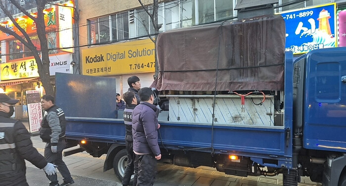 | ▲ 규정 위반 거리가게를 수거하는 종로구 직원들의 모습(2025). (사진=종로구청 제공) |