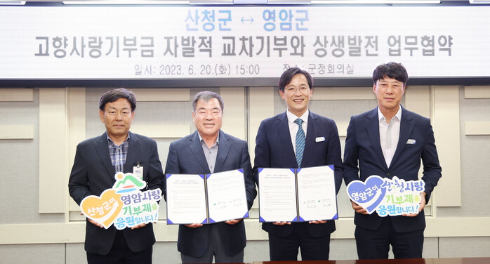 산청군은 지난 20일 오후 산청군청 군정회의실에서 영암군과 ‘고향사랑기부제 교차기부 및 상생발전 업무협약’을 맺었다고 21일 밝혔다.