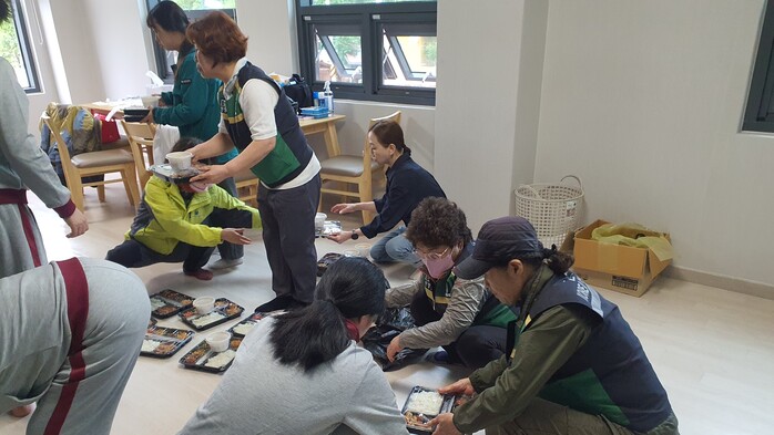 수해 소식을 듣고 회원 20여명은 한걸음에 달려와 임시 거주 중인 이재민들에게 식사나눔 봉사 활동 등 도움의 손길을 나눴다. 또한 9일에는 회원 10여명이 참여해 침수된 주택을 청소하며 구슬땀을 흘렸다.